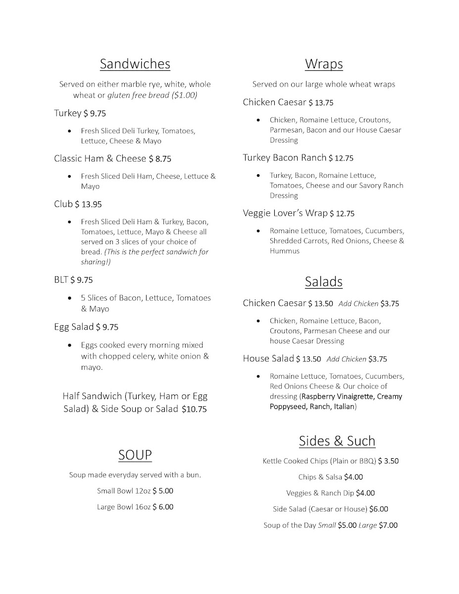 Welcome to MJ's Coffee Bar & Bistro, a charming café located at 143 Nelson St W in Virden, MB. This delightful spot is perfect for enjoying a quick meal or a leisurely coffee break. The menu features fresh, satisfying options like the Chicken Caesar and House Salad, both priced at CA$13.50, making healthy dining accessible.